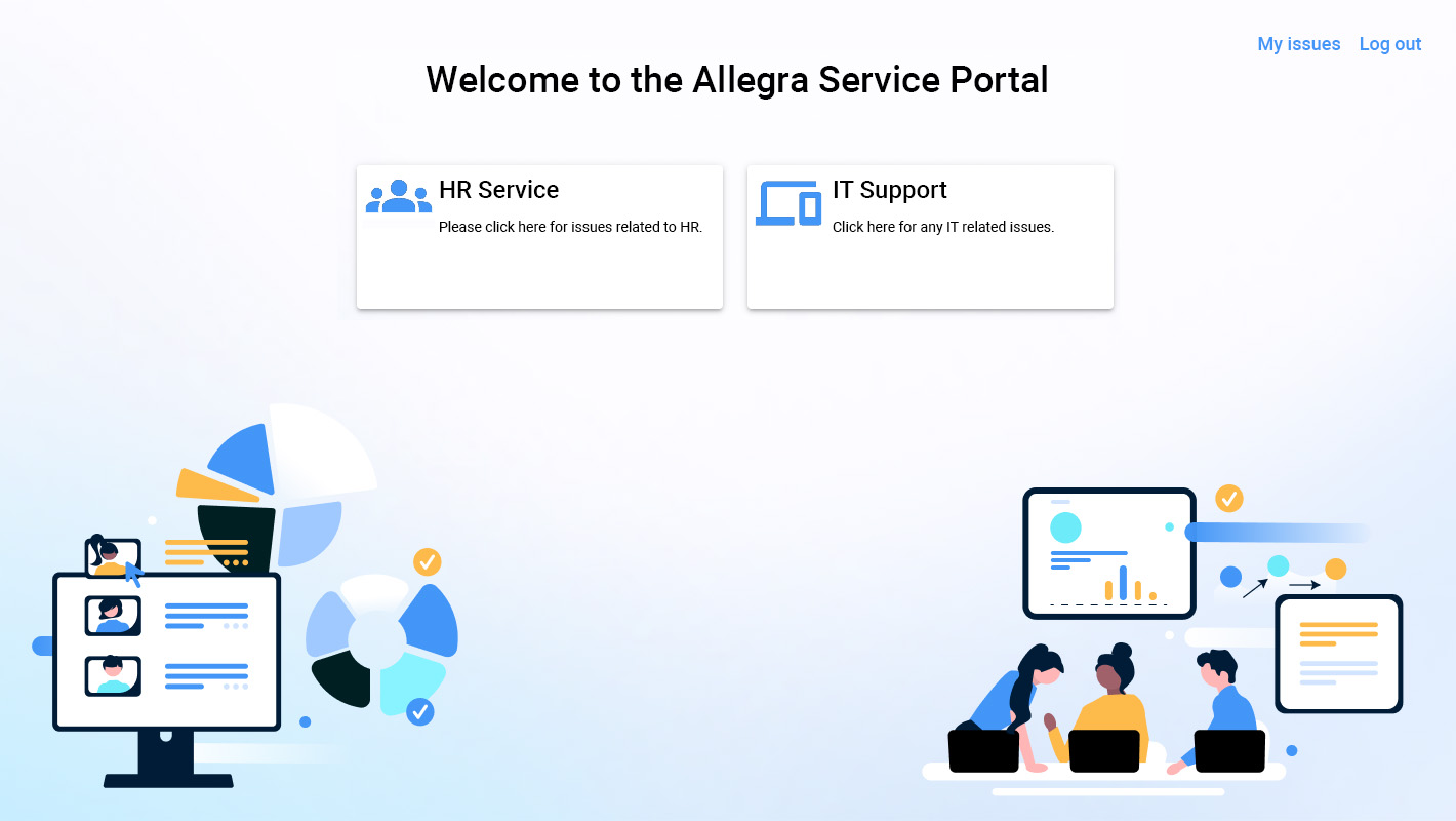 Oferă clienților tăi interni și externi o interfață completă de servicii cu software-ul Allegra pentru service help desk.