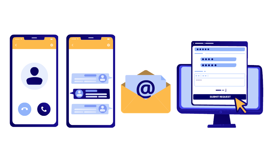 Fă-le ușor clienților tăi să ajungă la compania ta. Prin portal web, email, aplicație mobilă, telefon sau chat, poți rămâne în contact cu clienții tăi oricând.