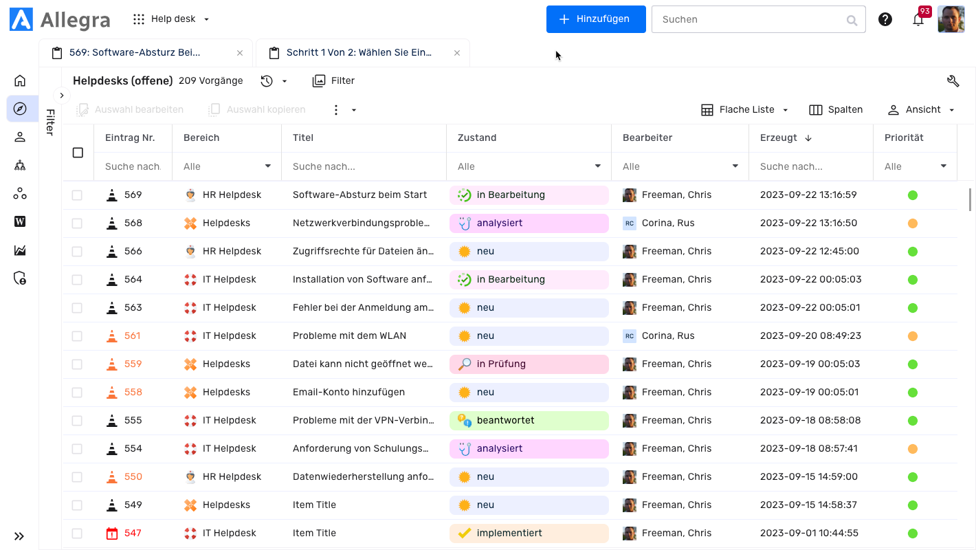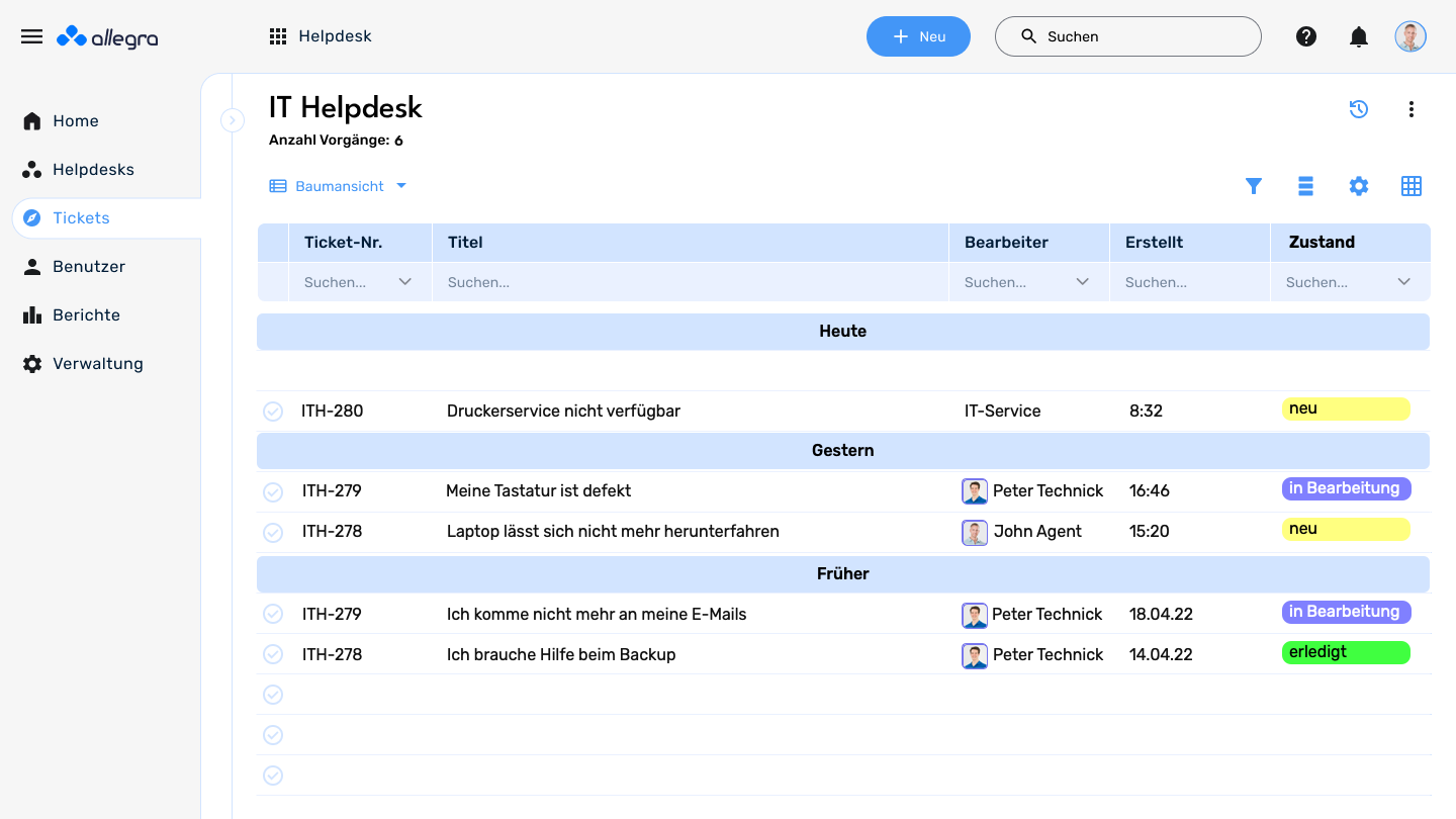Fie că este utilizat ca ticketing system pentru suport clienți extern, ca portal intern de servicii IT, ca sistem RMA sau în controlling: Allegra se potrivește perfect nevoilor și provocărilor tale specifice.