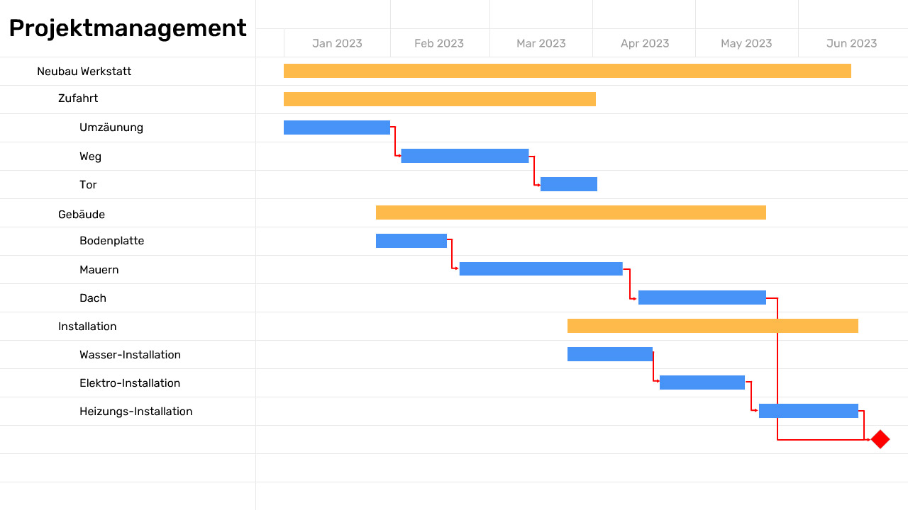 Cu ajutorul diagramelor Gantt interactive, poți vedea dintr-o privire ce sarcini trebuie realizate și când, precum și modul în care acestea depind logic unele de altele. Reperele (milestones) sunt clar vizibile și pot fi fixate.